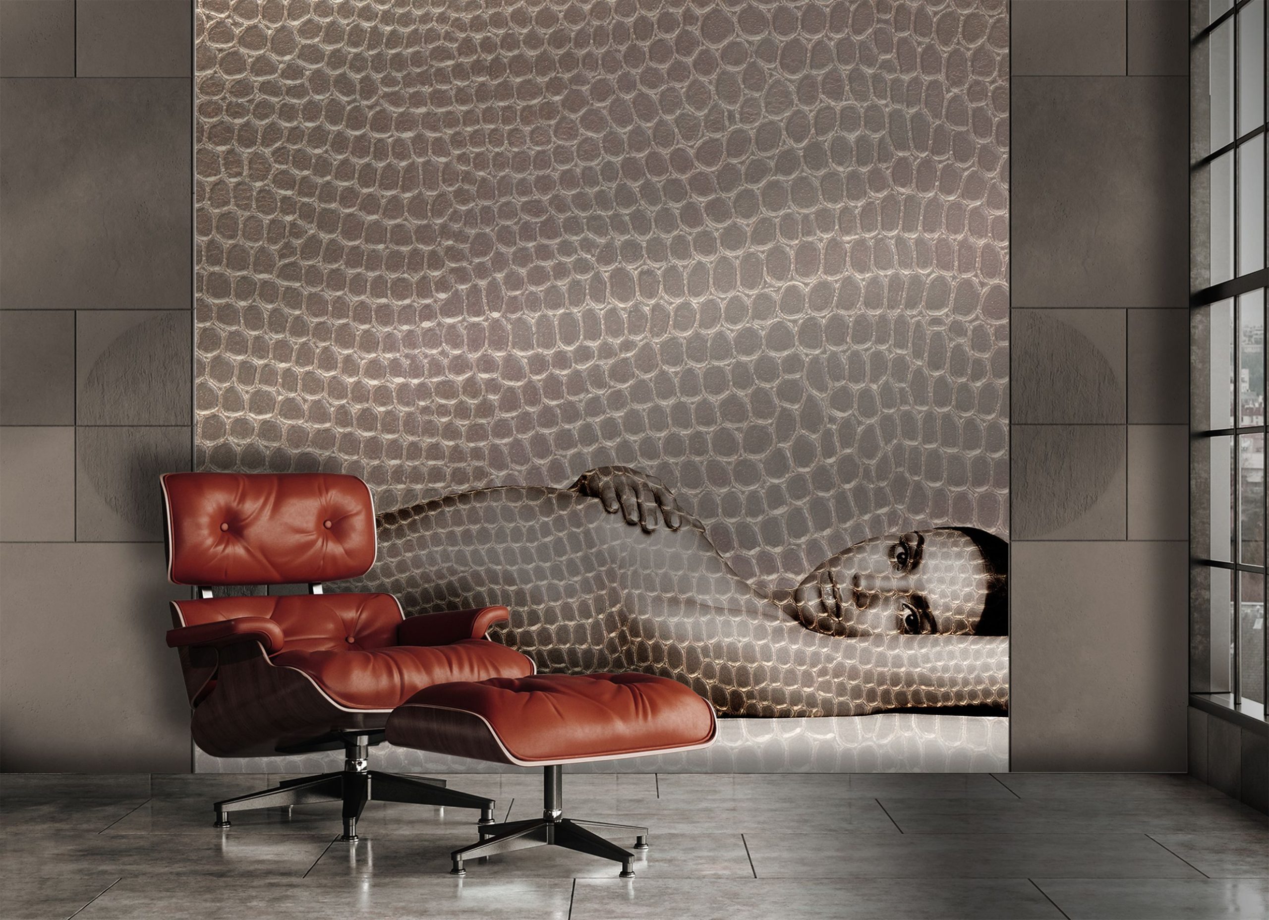 La carta da parati Awareness avorio unisce arte e design in un’affascinante composizione in stile animalier. L’immagine di una donna sdraiata è accompagnata da un fondo che imita la pelle di serpente, creando un effetto visivo sofisticato e moderno. Questo design originale, con il suo richiamo alla natura e all’arte, è perfetto per arredare sia ambienti residenziali che professionali. Realizzata con materiali di alta qualità come TNT, vinilico, fibra di vetro e tessuto murale, è ideale per saloni, camere da letto, soggiorni, ma anche per spazi come centri estetici, studi e negozi. Grazie alla sua texture unica e al design in stile animalier, Awareness avorio trasforma le pareti in una dichiarazione di stile audace e contemporaneo.