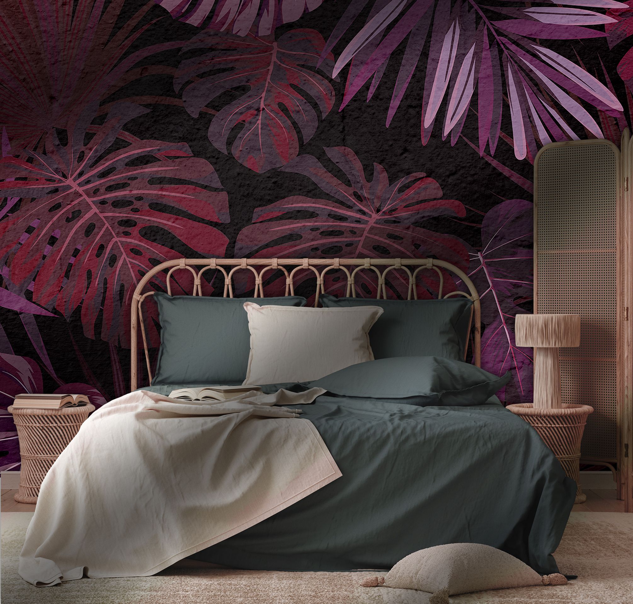 Bagliori rosa è una carta da parati stile tropicale che porta in casa un tocco naturale ed elegante. Le foglie giganti rosa risaltano su un fondo scuro effetto intonaco creando un ambiente fresco, luminoso e rilassante. È la scelta giusta se vuoi dare alla parete un aspetto moderno, naturale e raffinato. Indicata per un salotto, una camera da letto stile etnico o in una zona giorno. Ma anche per locali pubblici, negozi, centri estetici, hotel, b&b grazie alla grande varietà di supporti di stampa proposti che si adattano alle necessità di ogni ambiente. Una carta da parati bella da vedere e pratica da applicare, pensata per chi vuole rinnovare casa con stile e semplicità.