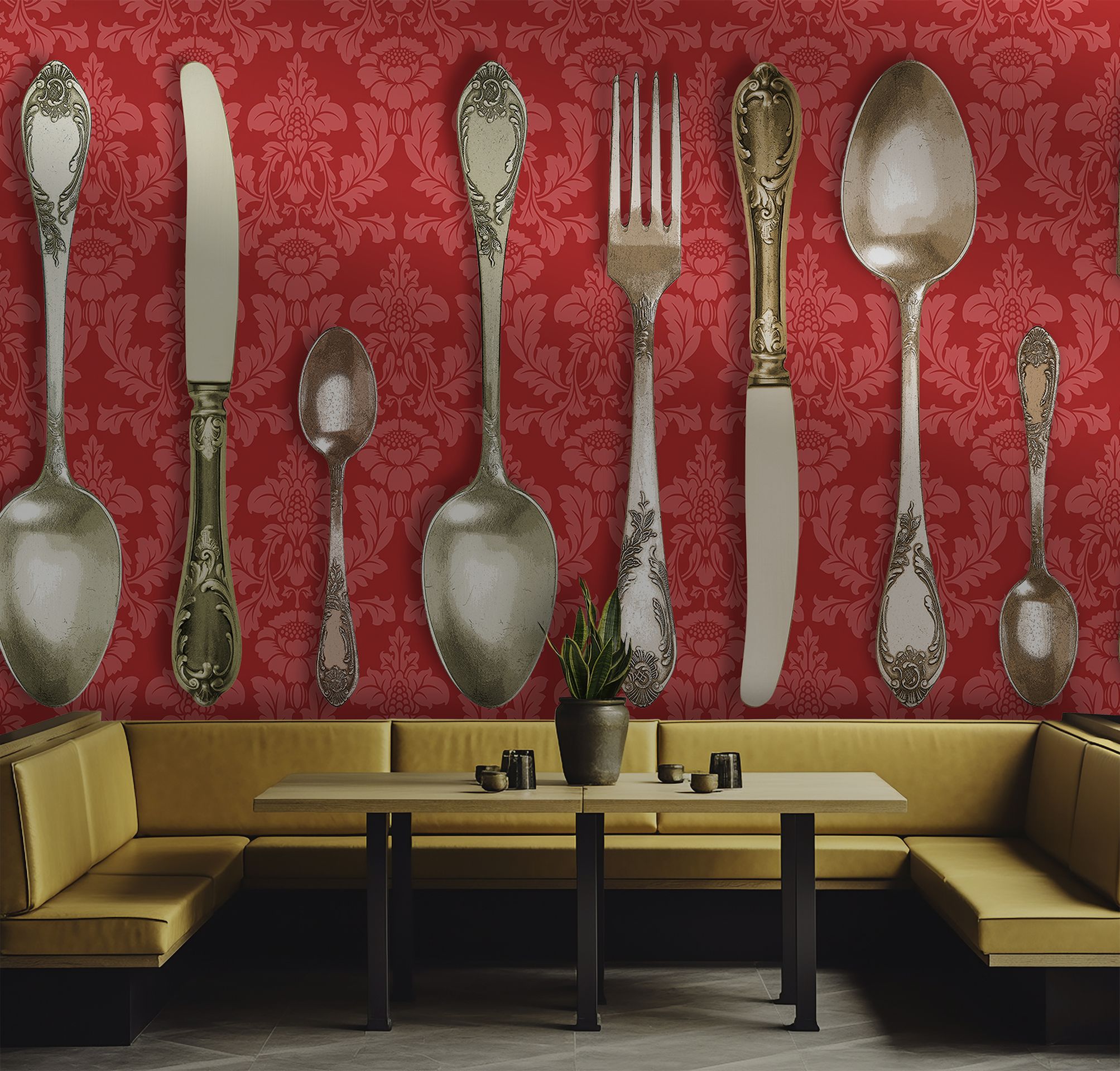 La carta da parati Bon Ton rosso è un’esplosione di stile, ironia e raffinatezza. Protagoniste della scena sono maxi posate barocche argentate, finemente illustrate con dettagli ricchi e manici smaltati in delicati colori pastello, che creano un contrasto sorprendente con lo sfondo effetto tessuto damascato. Questa carta da parati è perfetta per chi desidera decorare con personalità ambienti residenziali o contract: ristoranti, bistrot, caffè, hotel boutique, ma anche cucine moderne e sale da pranzo dal gusto eclettico. Realizzata su supporto vinilico resistente e lavabile, è ideale per pareti di alto impatto visivo, offrendo un mix tra classicismo barocco e ironia contemporanea. Bon Ton rosso è più di un rivestimento murale: è un dialogo tra eleganza e creatività, capace di trasformare qualsiasi spazio in un’esperienza estetica unica. Scopri il fascino di un design decorativo che non passa inosservato, pensato per stupire e durare nel tempo.