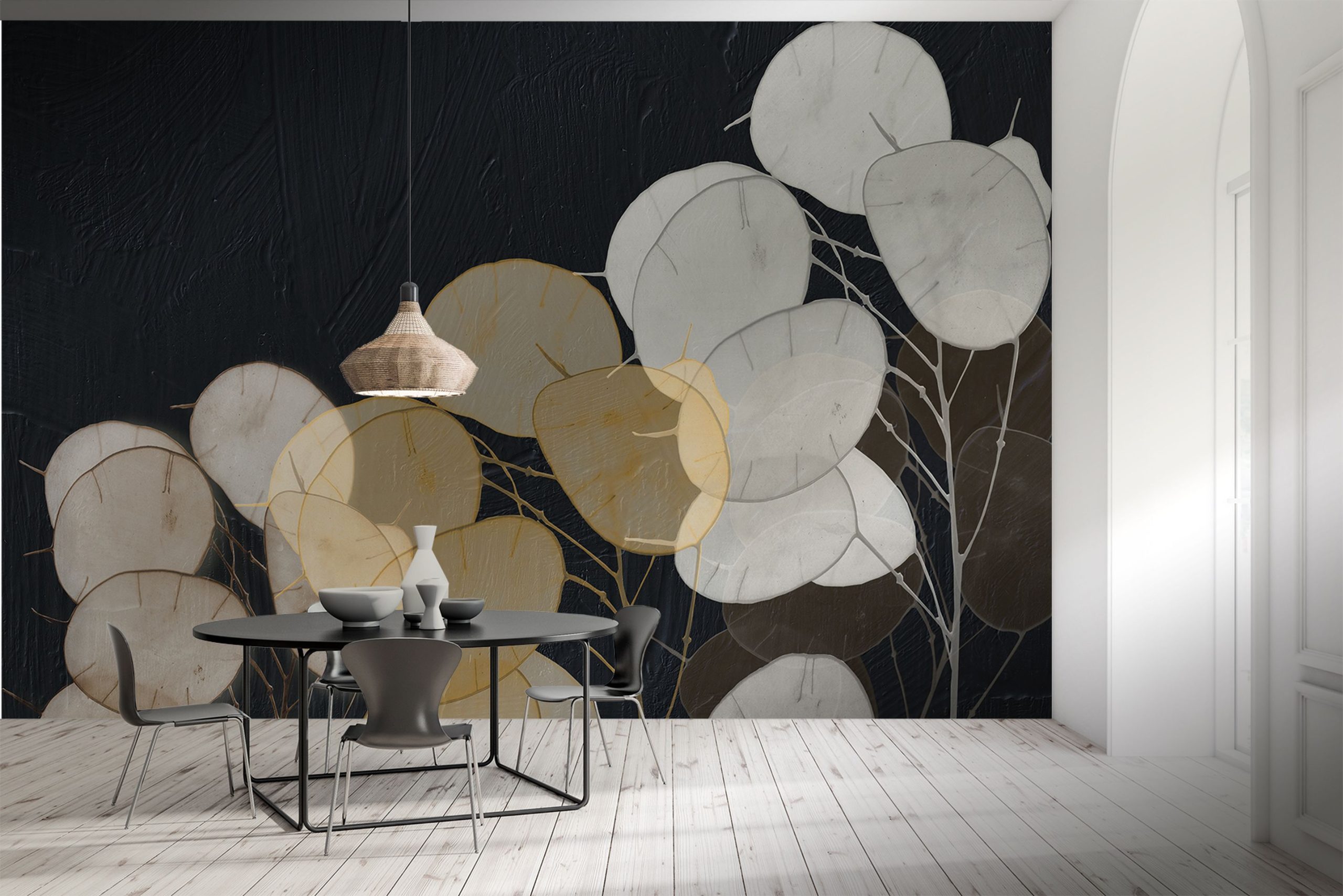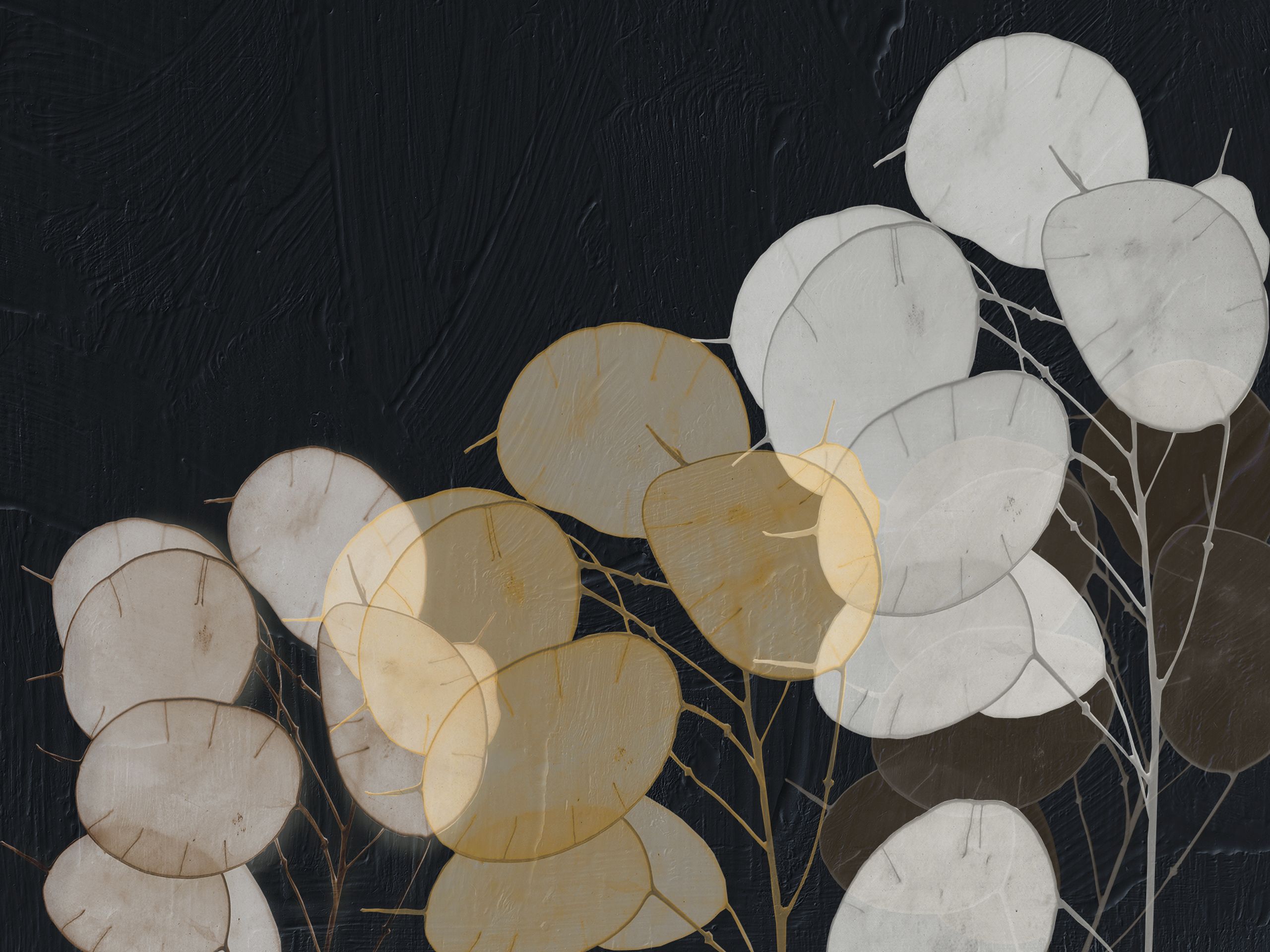 La carta da parati Crackle Still Life nero è pensata per chi ama gli ambienti dal gusto contemporaneo e ricercato. Le foglie di lunaria, leggere e traslucide, si stagliano su un fondo nero effetto intonaco spatolato, creando un contrasto elegante e di grande impatto visivo. Perfetta per spazi moderni, salotti minimal o camere da letto sofisticate, aggiunge profondità e personalità alle pareti, con un effetto decorativo sobrio ma scenografico.