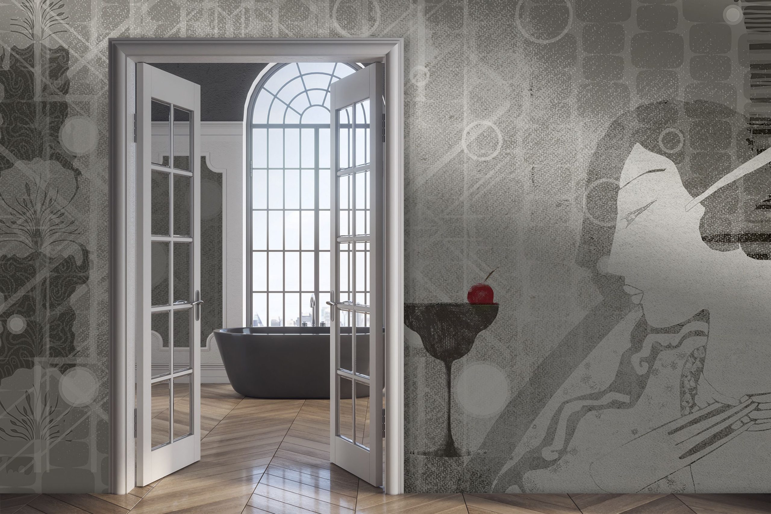 La carta da parati artistica Isadora grigio è un’opera d’arte da parete che fonde eleganza e modernità in un design unico. Ispirata al movimento futurista con richiami evidenti allo stile Liberty, questa decorazione murale presenta elementi geometrici sofisticati e il volto di una donna con una coppa da cocktail, raffinata e creativa. Il suo stile distintivo rende Isadora giallo la scelta perfetta per ambienti dal carattere deciso, come bar, ristoranti, hotel, lounge e altri spazi del settore ho.re.ca. che desiderano creare un’atmosfera esclusiva, artistica e coinvolgente. Realizzata con materiali di alta qualità, questa carta da parati garantisce una resa visiva di forte impatto e una lunga durata. È pensata per chi cerca una soluzione decorativa capace di trasformare le pareti in protagoniste.