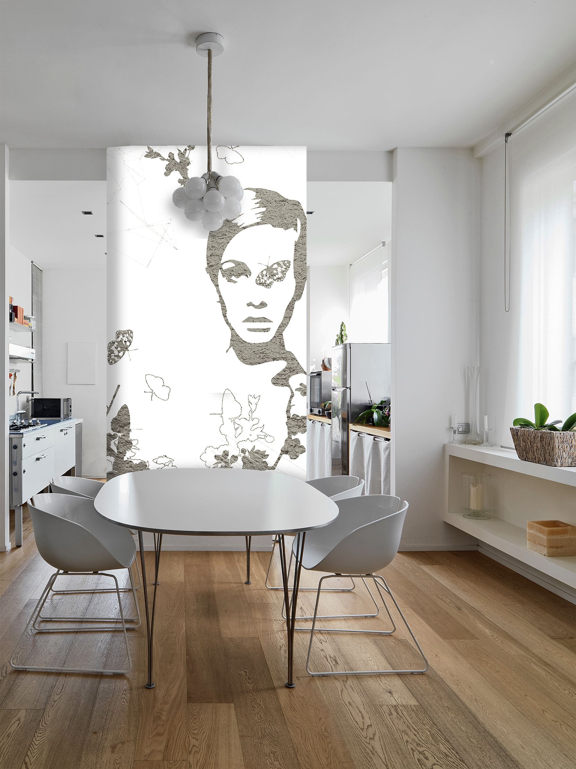 Scopri la carta da parati Tillys grigio, una raffinata fusione tra arte, moda e natura. Il volto di una donna, dal fascino iconico e dallo stile anni ’60 ispirato a Twiggy, si staglia con eleganza su un fondo caratterizzato da motivi geometrici moderni e delicati rami di fiori. Ideale per chi cerca un elemento decorativo distintivo, Tillys grigio trasforma le tue pareti in opere d’arte visiva. Perfetta per ambienti contemporanei, salotti, camere da letto o spazi creativi che vogliono unire glamour e design.